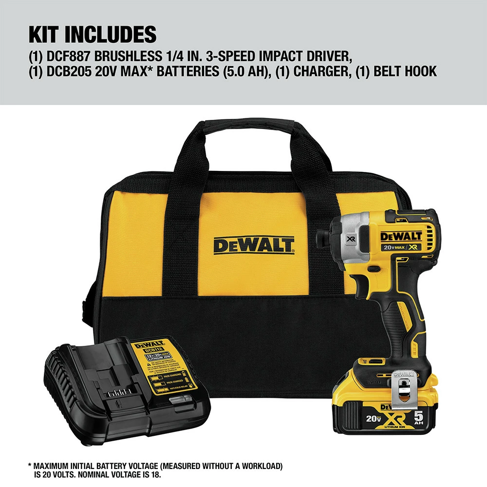 - 20V MAX XR BL Li-Ion 1/4 in. 3-Spd Impact Driver – DCF887