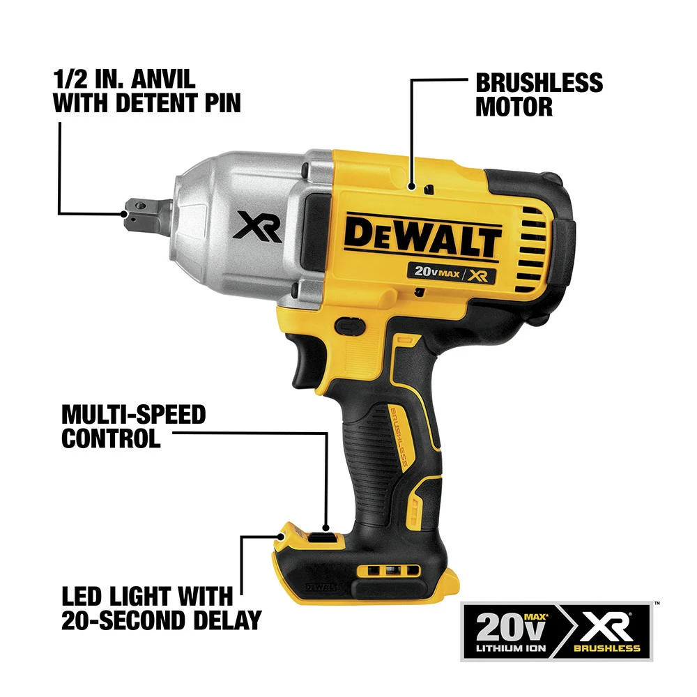 - 20V MAX XR BL Li-Ion 1/2″ High Torque Impact Wrench w/Detent Pin – DCF899
