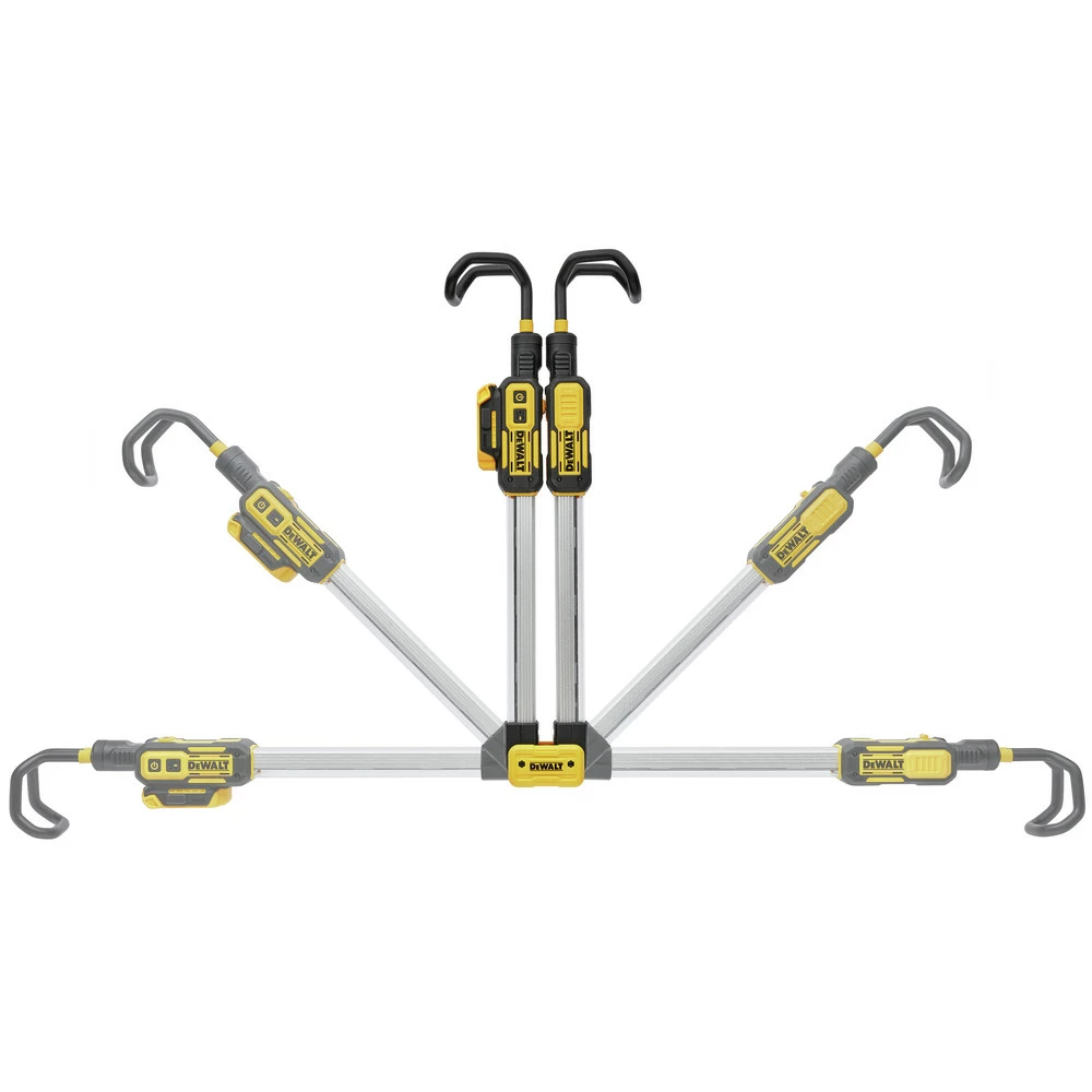 Get up to 1700 Lumens of natural, white light to brighten up dark areas in your engine bay, undercarriage, and more with this 12V/20V MAX Cordless Hood Light. Built to enhance your visibility as you work on your automobile, the Hood Light allows for precise control of the light while preserving battery life with toggleable high, low, and single-arm modes. It packs the adaptability to fit most SUVs and trucks with the anti-marring, padded hooks which rotate 360 Degrees and stretch between 51 in. and 74 in. while protecting your vehicle’s finish. The lightweight Cordless Hood Light is super convenient to carry and stow at 26-1/2 in. folded and 6-3/4 lbs. The light is compatible with all of our 12V MAX, 20V MAX, and DEWALT FLEXVOLT batteries (excluding DCB615).