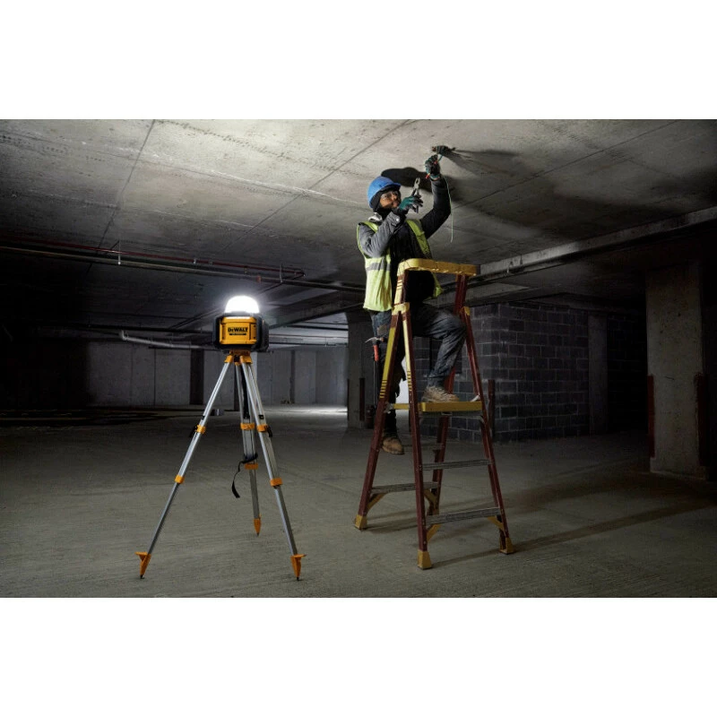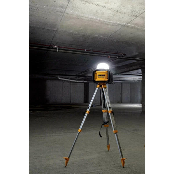 Our Tool Connect All-Purpose Cordless Work Light lights up the jobsite. It’s compact and portable so it’s convenient for everyday tasks, and it’s bright enough to light large areas. Powerful, efficient LED technology produces up to 5000 lumens of natural white light, without the heat and hassle of halogen. The All-Purpose Light can be used freestanding, tripod mounted (sold separately), or hung with a convenient integrated hook. The light works with all DEWALT 20V MAX and FlexVolt batteries, with up to 11 hours of runtime for a full day of work. Also, use the free Tool Connect app to control and monitor your light remotely on the jobsite. Plus, its impact resistant body and lens, and a 3-year limited warranty, it will stand up to your tough jobsite environments.