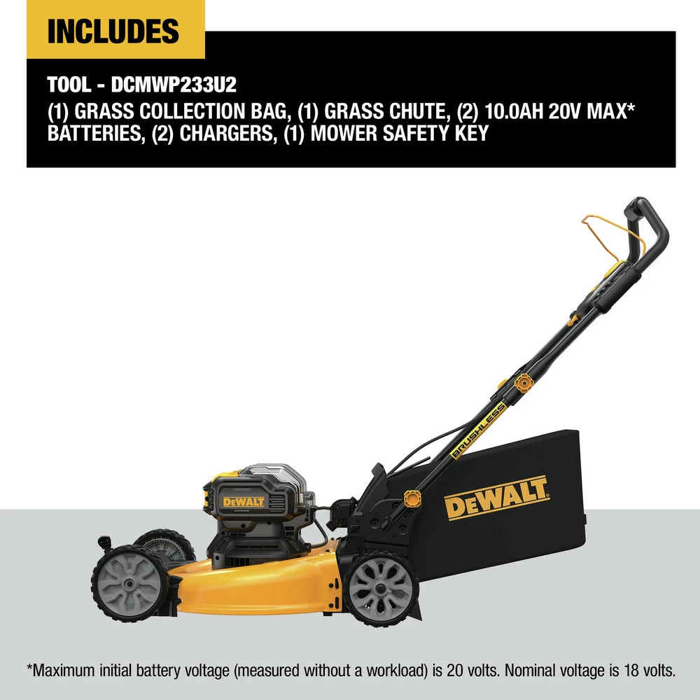 - 2X 20V MAX BL Li-Ion 21-1/2 in. Push Mower – DCMWP233