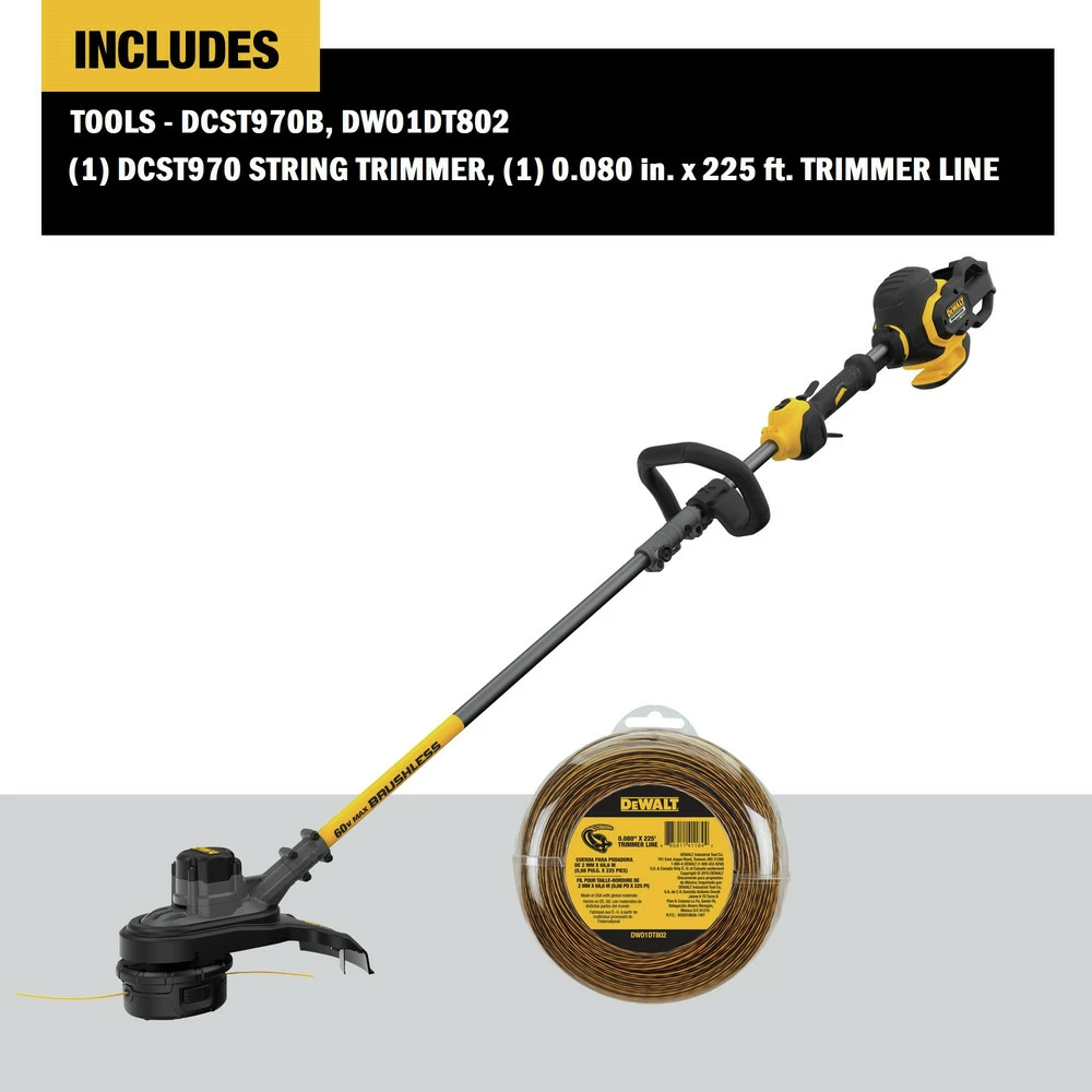 Dewalt DCST970B-DWO1DT802 60V MAX FLEXVOLT Brushless Lithium-Ion Cordless String Trimmer And 0.080 In. X 225 Ft. String Trimmer Line Bundle (Tool Only)